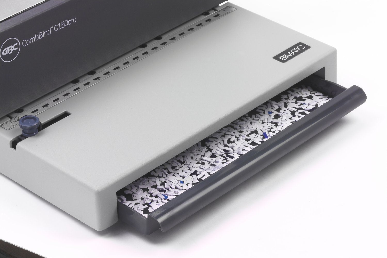 Ideal para la grandes oficinas con muchas necesidades, la Combbind C150pro es una encuadernadora de canutillo fuerte y duradera. De fácil empleo y con una bandeja de recortes de gran capacidad, puede perforar hasta 20 hojas A4 de 80 g y encuadernar hasta 450 hojas.