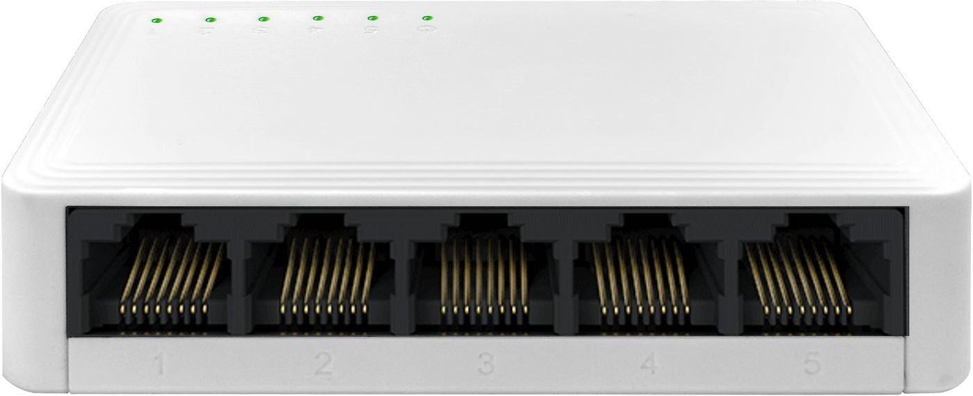 eSTUFF GLB236050. Tipo de interruptor: No administrado. Puertos tipo básico de conmutación RJ-45 Ethernet: Gigabit Ethernet (10/100/1000), Cantidad de puertos básicos de conmutación RJ-45 Ethernet: 5. Bidireccional completo (Full duplex). Capacidad de conmutación: 10 Gbit/s. Estándares de red: IEEE 802.3. Conector eléctrico: Toma de entrada de CC. Montaje de pared