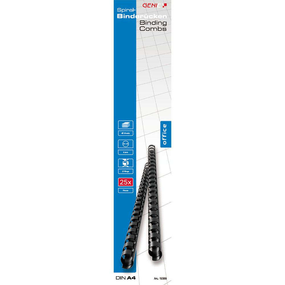 Genie Espiral Lomos 8mm Negro 25 Piezas