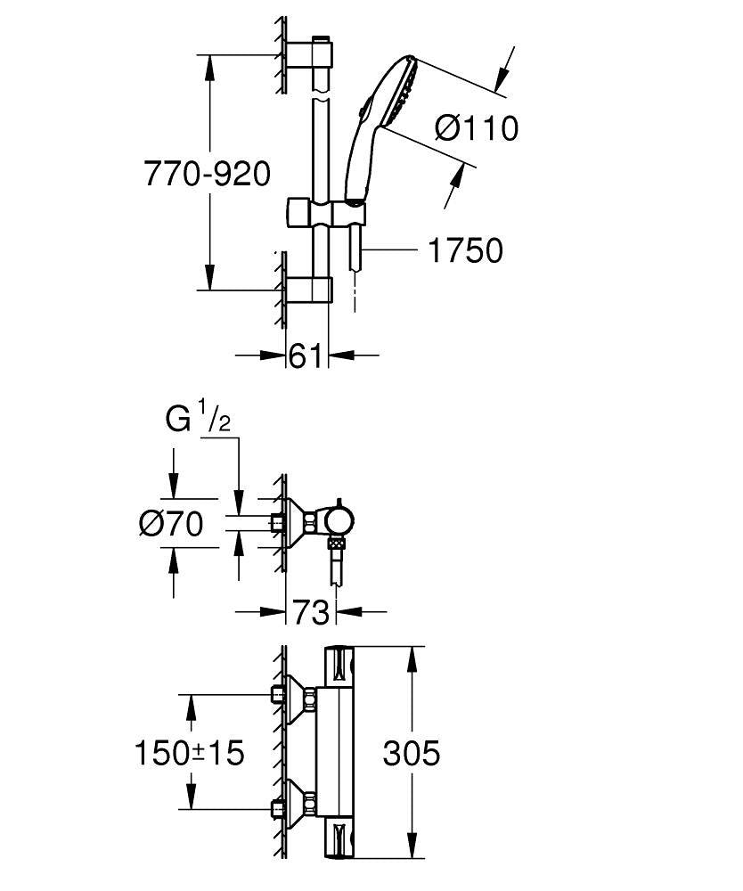 Grohe Grohtherm 800 Thermostat- Brausebatterie 1/2 Mit Brause