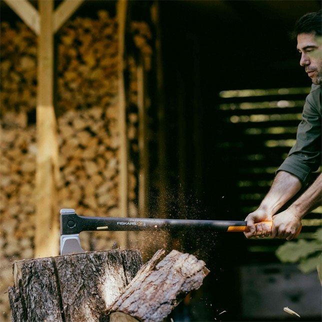 Hacha De Dividir Fiskars X-Series X36 Con Hoja En L, Hacha/Hacha Negro/Naranja, Mango Largo 1069109