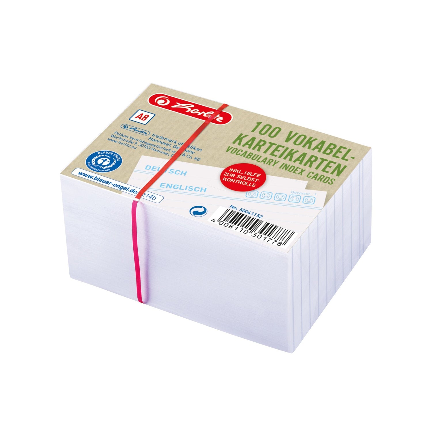 Herlitz Karteikarte A8 Vocablen Liniert Blanco Bl.Engel 100er