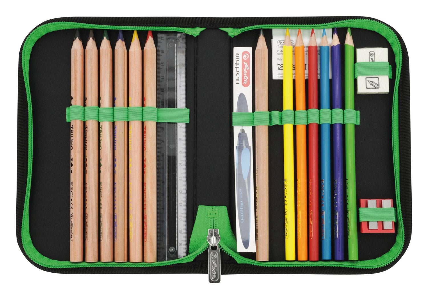 Herlitz SoftLight Plus Greenline Explorer juego de mochila escolar Niño Poliéster Negro, Verde