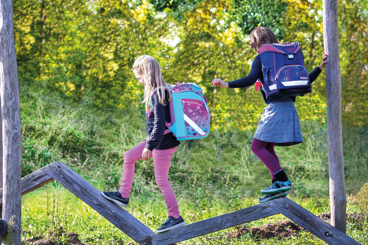 Herlitz SoftLight Plus GreenLine Pink Bubbles juego de mochila escolar Chica Poliéster Azul, Rosa