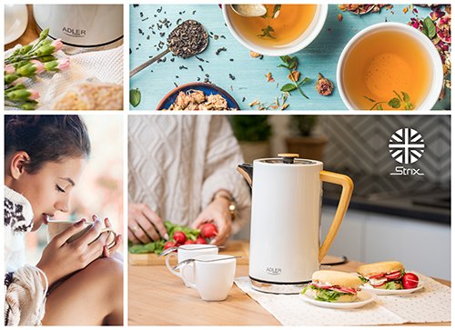 Adler AD 1347W, 1,5 L, 2200 W, Blanco, Madera, Acero inoxidable, Indicador de nivel de agua