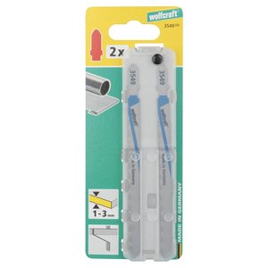 wolfcraft GmbH 4006885354906. Tipo de producto: Hoja de sierra de vaivén, Adecuado para materiales: Metal, Acero, Material de la cuchilla: Acero de alto carbono (HCS). Longitud de trabajo: 10,5 cm, Espacio entre dientes de la hoja: 1,2 mm. Longitud total: 13 cm. Cantidad por paquete: 2 pieza(s)