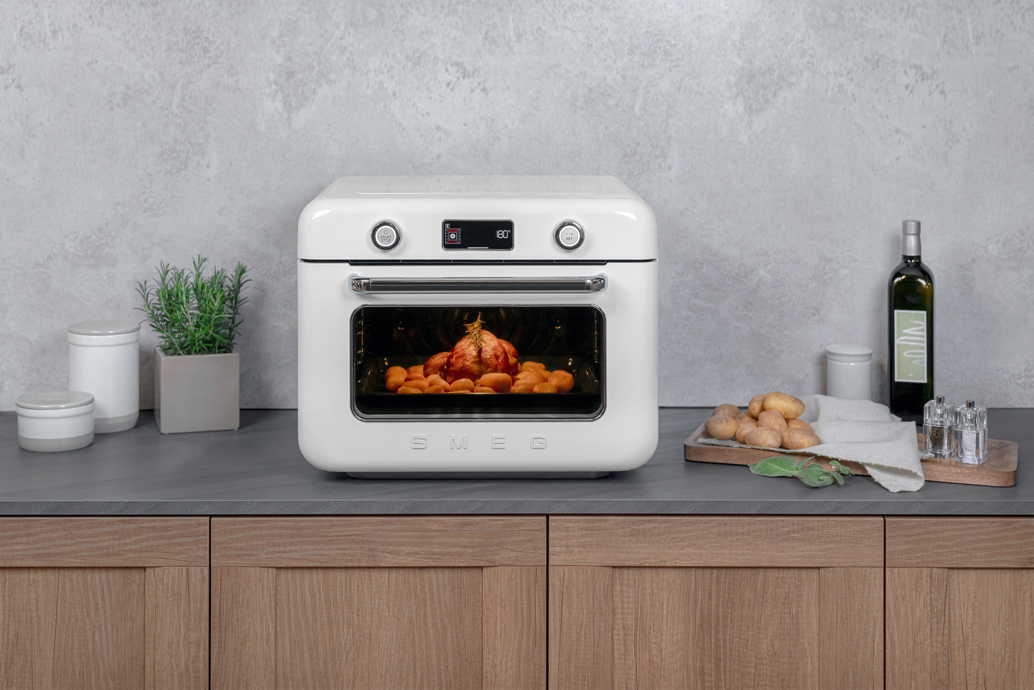 Smeg COF01WHEU, Pequeño, 30 L, 40 - 230 °C, Tarta, Chef, Pescados, Carnes, Tarta, Pizza, Vapor, Vegetal, 1800 W, 3 estanterías