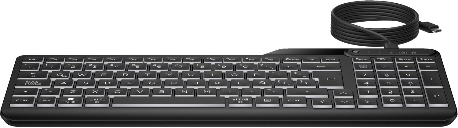 HP 405 Backlit Wired Keyboard teclado Oficina USB Negro