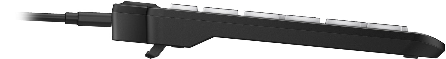 - Ajusta tu espacio de trabajo a tu gusto. Con 12 teclas programables[1], puedes crear tus propios accesos directos o automatizar combinaciones de teclas difíciles para ahorrar tiempo mientras trabajas. Además, con una inclinación de 0 a 6 grados y tres niveles ajustables de brillo LED, la comodidad está al alcance de tus manos.