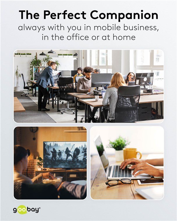 Goobay 74457, USB 3.2 Gen 1 (3.1 Gen 1) Type-C, USB 2.0 Type-A, USB 3.2 Gen 1 (3.1 Gen 1) Type-A, 5000 Mbit/s, Gris claro, Aluminio, 0,1 m