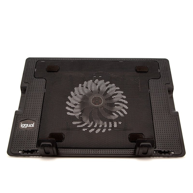 iggual RP1V17. Tipo de producto: Soporte para ordenador portátil, Color del producto: Negro, Compatibilidad máxima de tamaño con pantallas de ordenadores portátiles: 43,2 cm (17"). Ángulo de inclinación: 6,5 - 45°. Peso: 840 g. Cables incluidos: USB