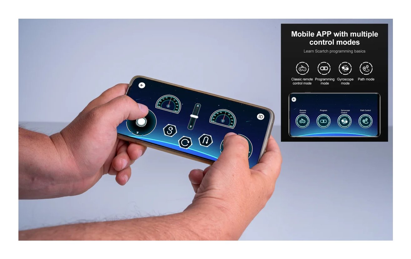 - Modo dual: Puede utilizarse a través del radiocontrol y una aplicación