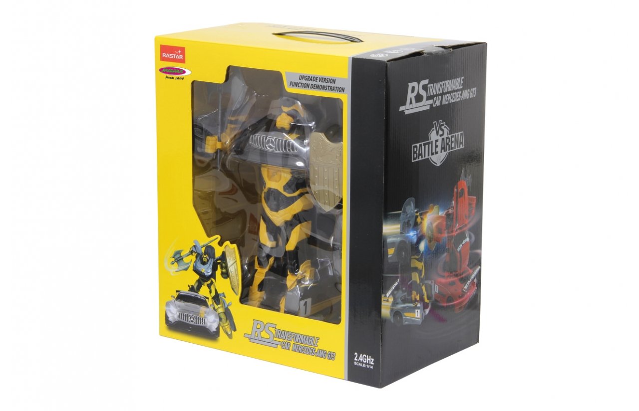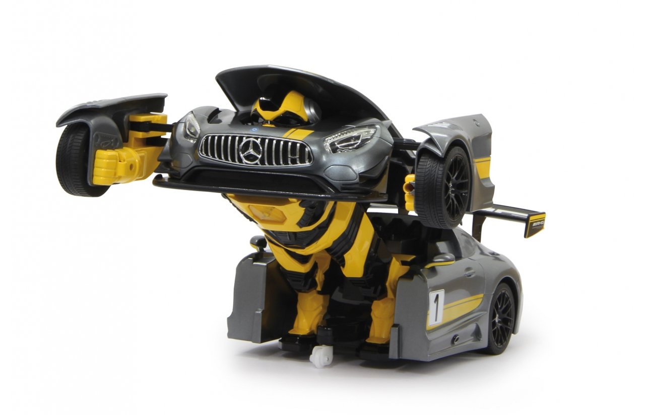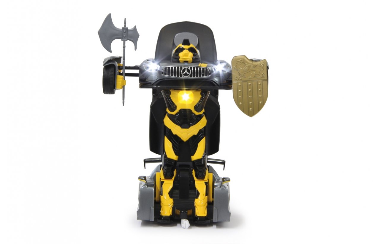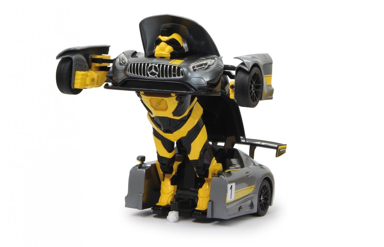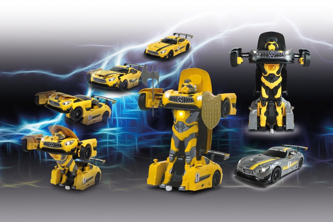 El talento transformador de Robicar, el Jamara`s Transformer, es la diversión ideal para el juego 2en1 de los más pequeños. Cuando el peligro amenaza, el robot se transforma paso a paso en un elegante coche deportivo con sólo pulsar un botón y puede disfrazarse perfectamente. El efecto sorpresa es perfecto cuando el coche deportivo se transforma de nuevo en el robot con sólo pulsar un botón. Nuestro Transformer Robicar es robusto y de alta calidad con sus neumáticos de goma, ruedas libres y carrocería de metal y plástico. Transformación de lujo realizada por Jamara, que promete diversión para los niños.