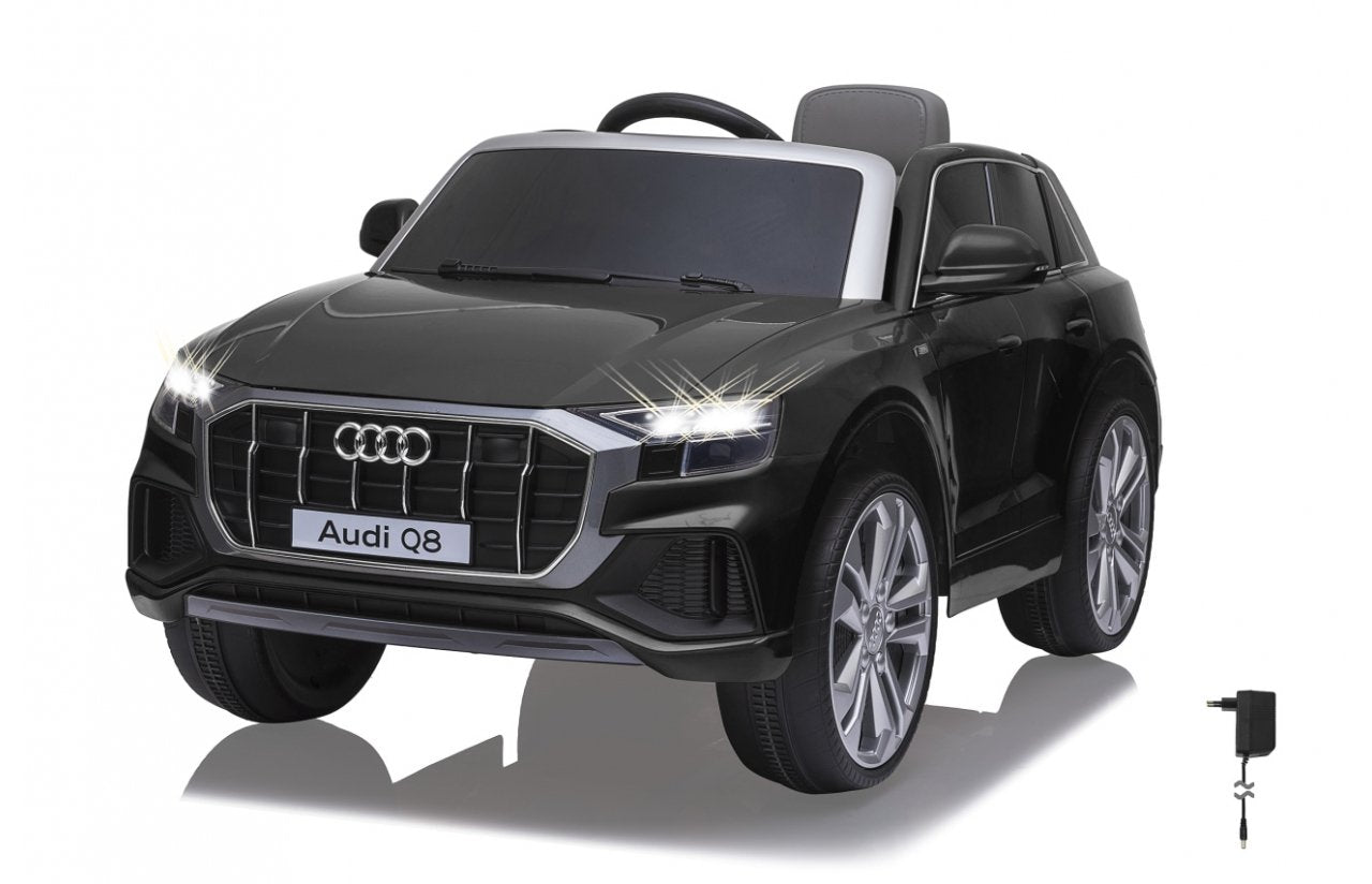 Jamara Audi Q8. Tipo de unidad: Alimentado con batería, Edad recomendada (mín.): 3 año(s), Número de ruedas: 4 rueda(s), Efectos luminosos, Color del producto: Negro. Necesita pilas, Tipo de batería: AA