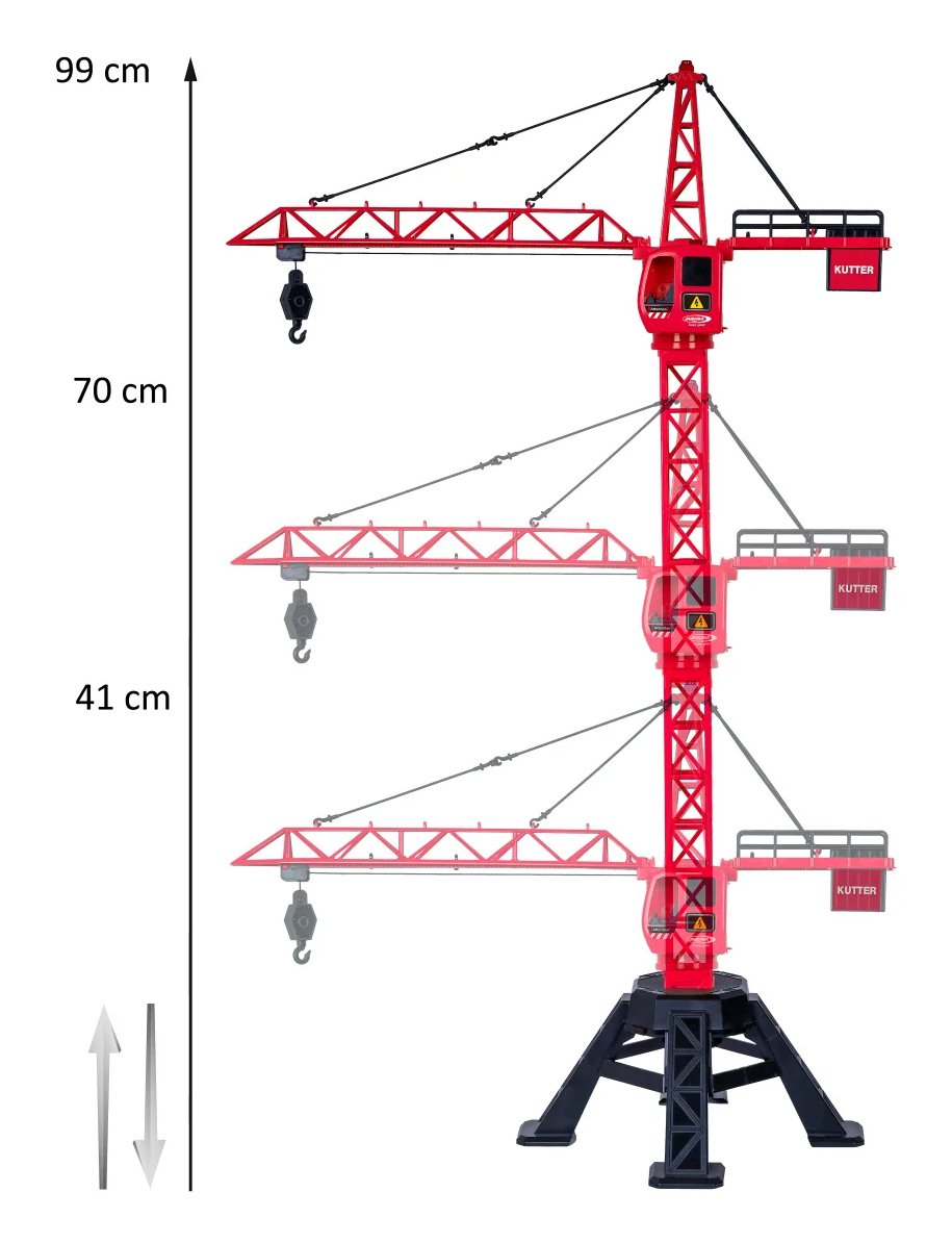 La grúa torre Kutter XL 99 IR es el juguete perfecto para el sitio de construcción en la habitación de los niños. Este modelo con licencia oficial no solo tiene un aspecto increíble, sino que también ofrece mucha diversión. La cabina abierta permite que una figura de juego se suba, y con las luces LED en el techo, la grúa cobra vida. La grúa está equipada con un control remoto por infrarrojos, con el que se puede manejar fácilmente el gancho de carga y la rotación de la torre. De esta manera, la grúa puede levantar y bajar cargas, con una impresionante capacidad de carga de 500g y un acoplamiento deslizante para un trabajo seguro. La viga de la grúa se puede mover manualmente hacia adelante y hacia atrás, y la grúa puede girar sin fin, lo que permite alcanzar fácilmente cualquier punto en el sitio de construcción. Con las 3 alturas de montaje diferentes, la grúa está lista para cualquier tipo de obra y es flexible en su uso. La batería intercambiable asegura que la grúa siempre esté lista para funcionar, y el montaje sencillo hace que su construcción sea muy fácil. Con el soporte de carga incluido para levantar y bajar materiales más grandes y el ajuste manual de la plataforma de montaje, la grúa está preparada para cualquier proyecto de construcción. ¡La grúa torre Kutter XL 99 IR es el regalo perfecto para los pequeños jefes de obra que quieren trabajar duro!
