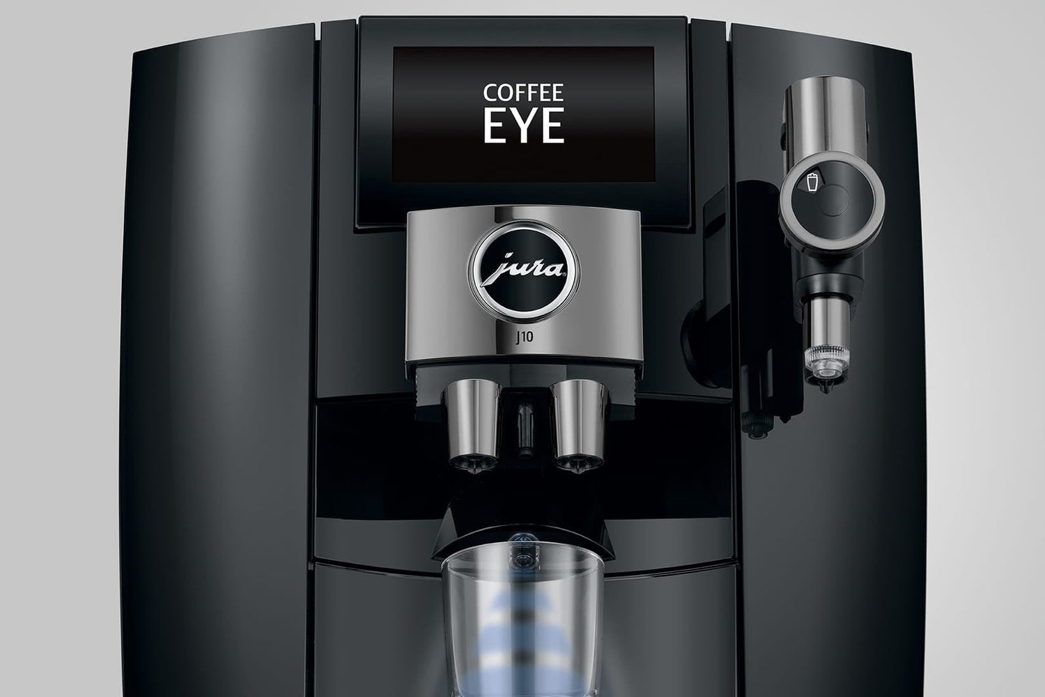 JURA J10. Tipo de producto: Máquina espresso, Máquina de café: Totalmente automática, Capacidad de reservorio de agua: 1,9 L, Café tipo de entrada: Granos de café, De café molido, Depósito para café preparado: Taza, Capacidad en tazas: 16 tazas, Molinillo integrado. Tipo de visualizador: LED. Potencia: 1450 W. Color del producto: Negro
