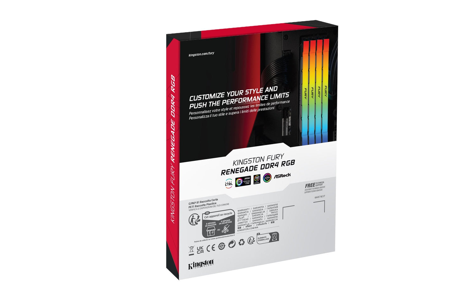 Se presenta en módulos individuales de 8GB a -32GB de capacidad, y en kits de 2, 4 y 8 unidades con capacidades de 16 GB a 256 GB. Kingston FURY Renegade DDR4 RGB es una memoria Preparada para AMD Ryzen, Intel® XMP Certified y XMP Ready.
