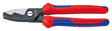 Para cortar cables de cobre y aluminio. No apto para cortar cable de acero o conductores de cobre trenzado. Cuchillas de corte templadas y afiladas con gran precisión. Corte limpio sin deformaciones ni aplastamientos. Distribuyendo el proceso de corte en corte inicial (revestimiento aislante en la parte delantera del filo) y corte final (conductor en la parte trasera del filo), es posible cortar cables de hasta Ø 20 mm con el manejo de una mano.. Se requiere de un menor esfuerzo gracias a su especial geometría de corte y su óptima multiplicación. El retén protector evita que el trabajador se pellizque los dedos. Articulación con tornillo ajustable.