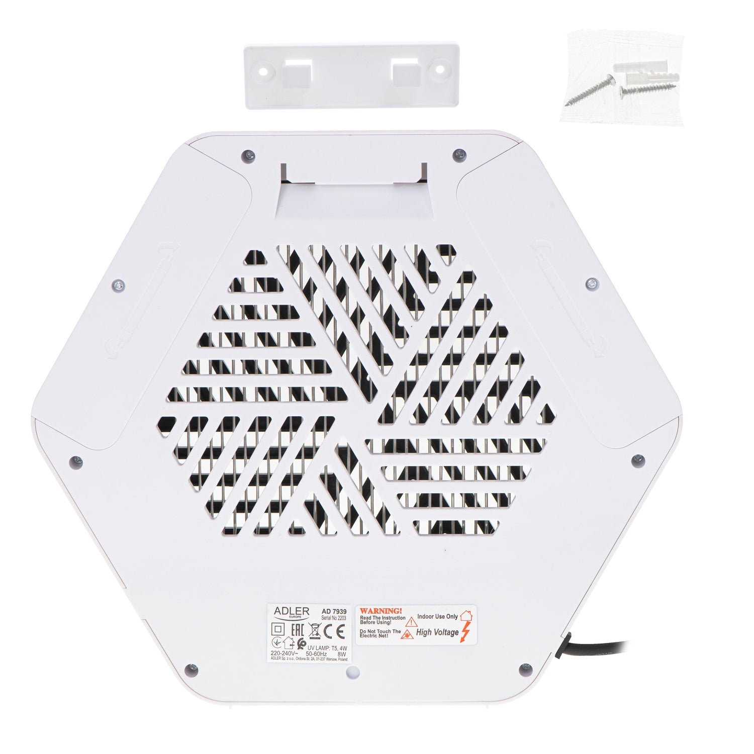 Adler AD 7939. Tipo: Automático, Tipo de producto: Matainsectos, Color del producto: Blanco. Alimentación: Corriente alterna, Voltaje de entrada AC: 220-240 V, Frecuencia de entrada AC: 50-60 Hz. Ancho: 320 mm, Profundidad: 60 mm, Altura: 288 mm
