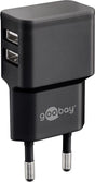 Goobay 44951. Tipo de cargador: Interior, Alimentación: Corriente alterna, Compatibilidad del cargador: Teléfono móvil, Smartphone. Voltaje de entrada: 100 - 240 V, Voltaje de salida máximo: 5 V, Corriente de salida de adaptador AC: 2,4 A. Cantidad de puertos USB 2.0: 2. Color del producto: Negro