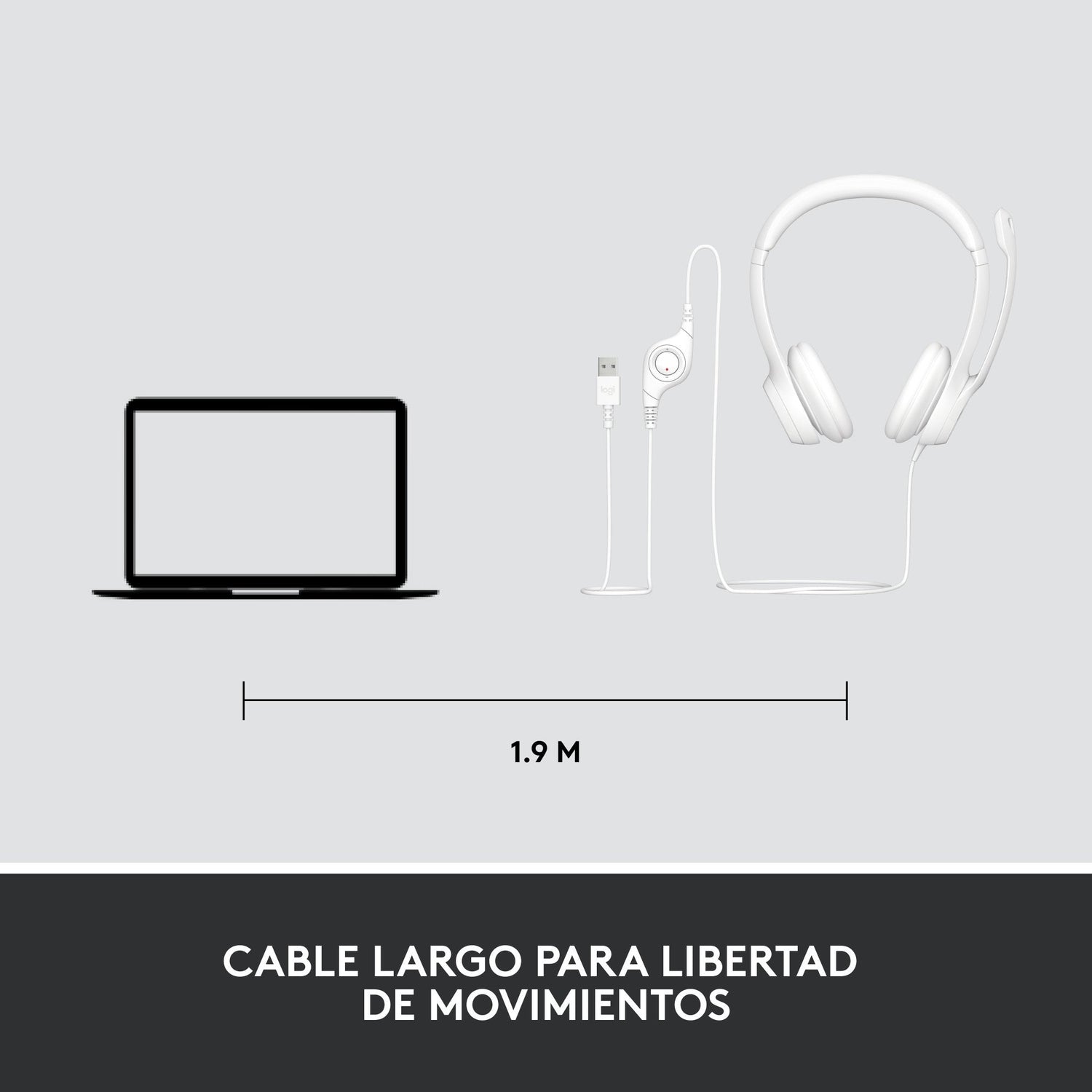 Disfruta de audio nítido para reuniones por vídeo con una simple conexión USB Plug and Play y un micrófono con supresión de ruido. La varilla de micrófono se puede apartar cuando no se vaya a utilizar. Los controles integrados en el cable permiten controlar el volumen o silenciarlo sin interrumpir la llamada. Los transductores optimizados ofrecen audio digital mejorado para el trabajo o la diversión.