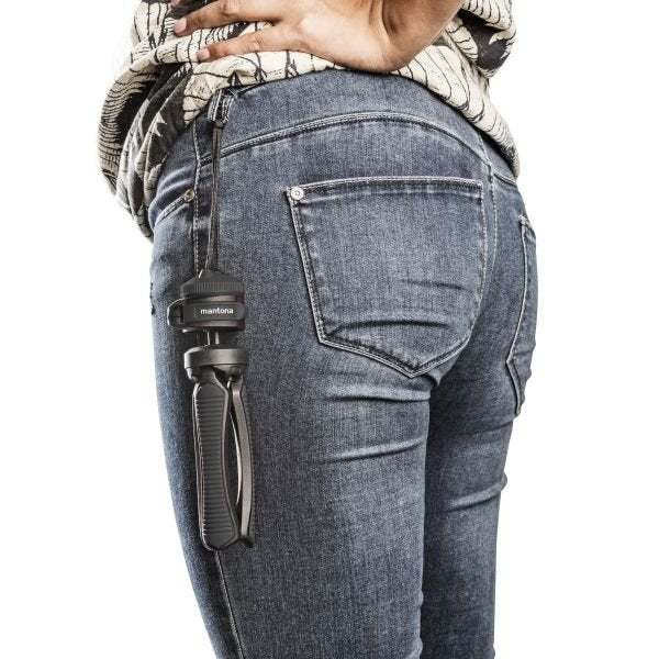 Mantona 21406. Capacidad máxima de peso: 2,5 kg, Número de piernas: 3 pata(s). Altura (máx.): 17 cm, Altura (min.): 13 cm, Peso: 176 g. Color del producto: Negro, Gris