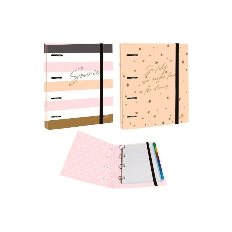 Mariola Carpeblock 4 Anillas 40mm Folio C/Goma C/Recambio 100h 90gr Cartón Forrado Plastificado 6 Frases Diseños Surtidos