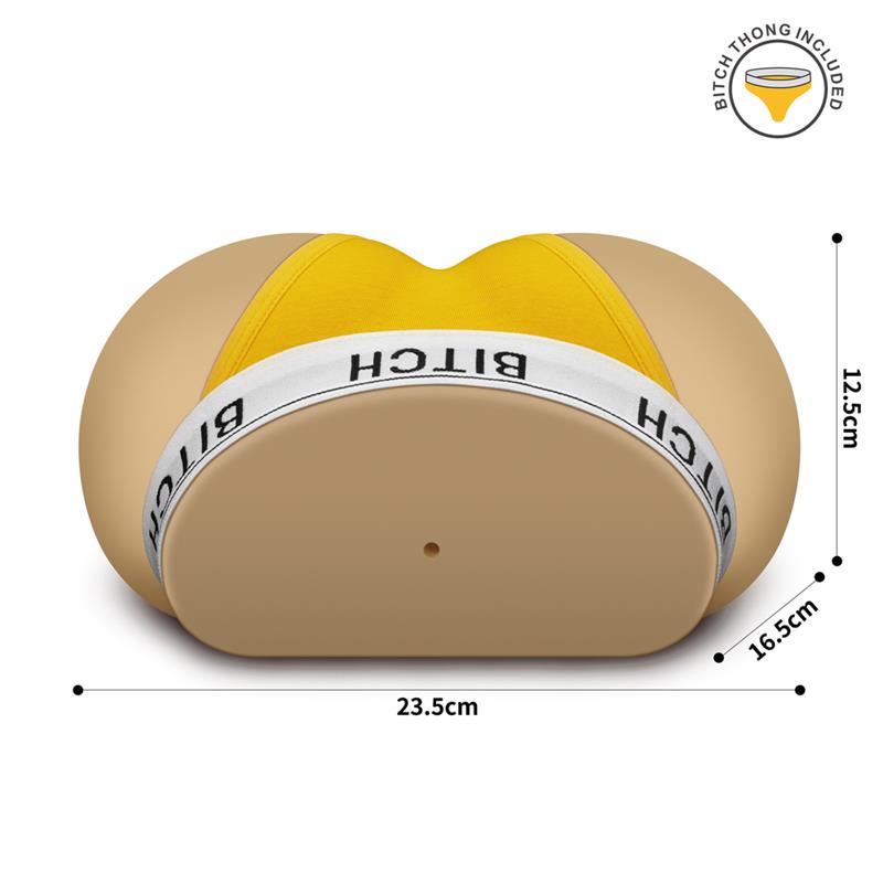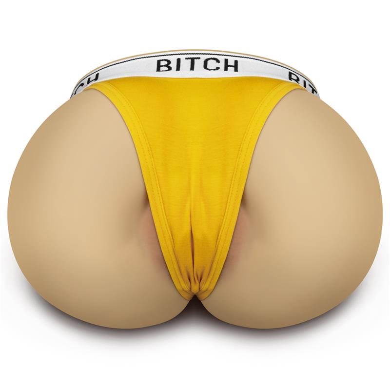 Masturbador con un diseño ideal. Este masturbador en forma de culo cuenta con un tanga amarillo con la palabra Bitch. Está bellamente diseñado y moldeado a partir de una modelo para una experiencia más auténtica. La inserción del ano es mucho más apretada y cuenta con numerosas curvas. Podrás acostarla o sostenerla cerca de ti mientras exploras cualquiera de sus dos intrincadas inserciones.