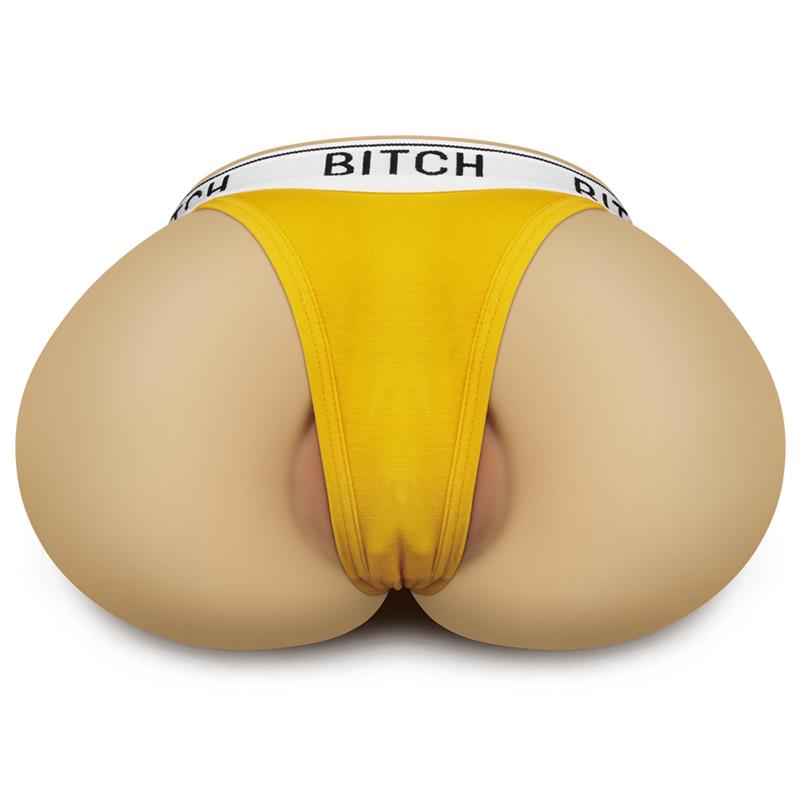 Masturbador con un diseño ideal. Este masturbador en forma de culo cuenta con un tanga amarillo con la palabra Bitch. Está bellamente diseñado y moldeado a partir de una modelo para una experiencia más auténtica. La inserción del ano es mucho más apretada y cuenta con numerosas curvas. Podrás acostarla o sostenerla cerca de ti mientras exploras cualquiera de sus dos intrincadas inserciones.