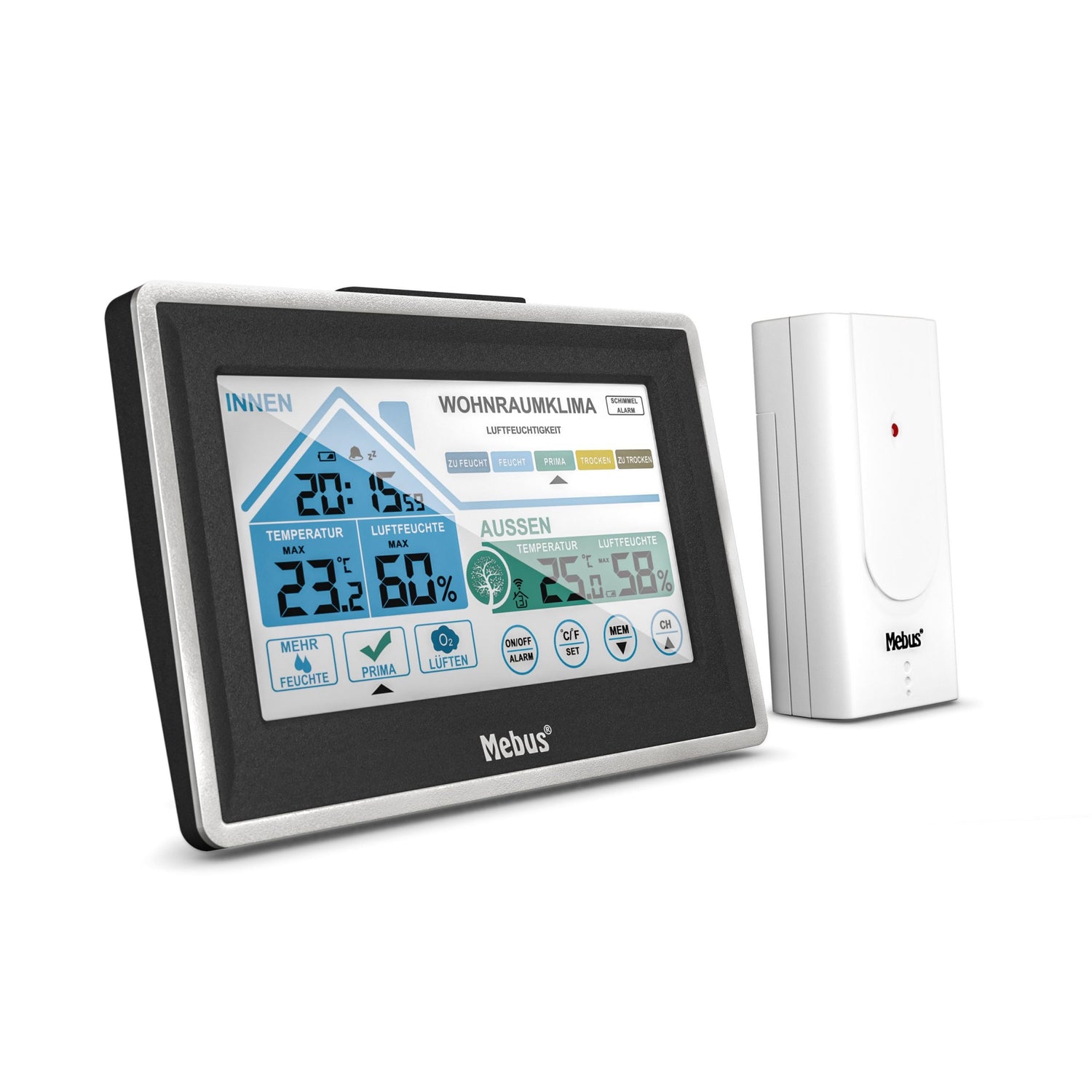 Mebus 01026, Negro, Blanco, Higrómetro de interior, Termómetro de interior, Higrómetro de exterior, Termómetro para exteriores, Higrómetro, Termómetro, Higrómetro, Termómetro, F, °C, Batería
