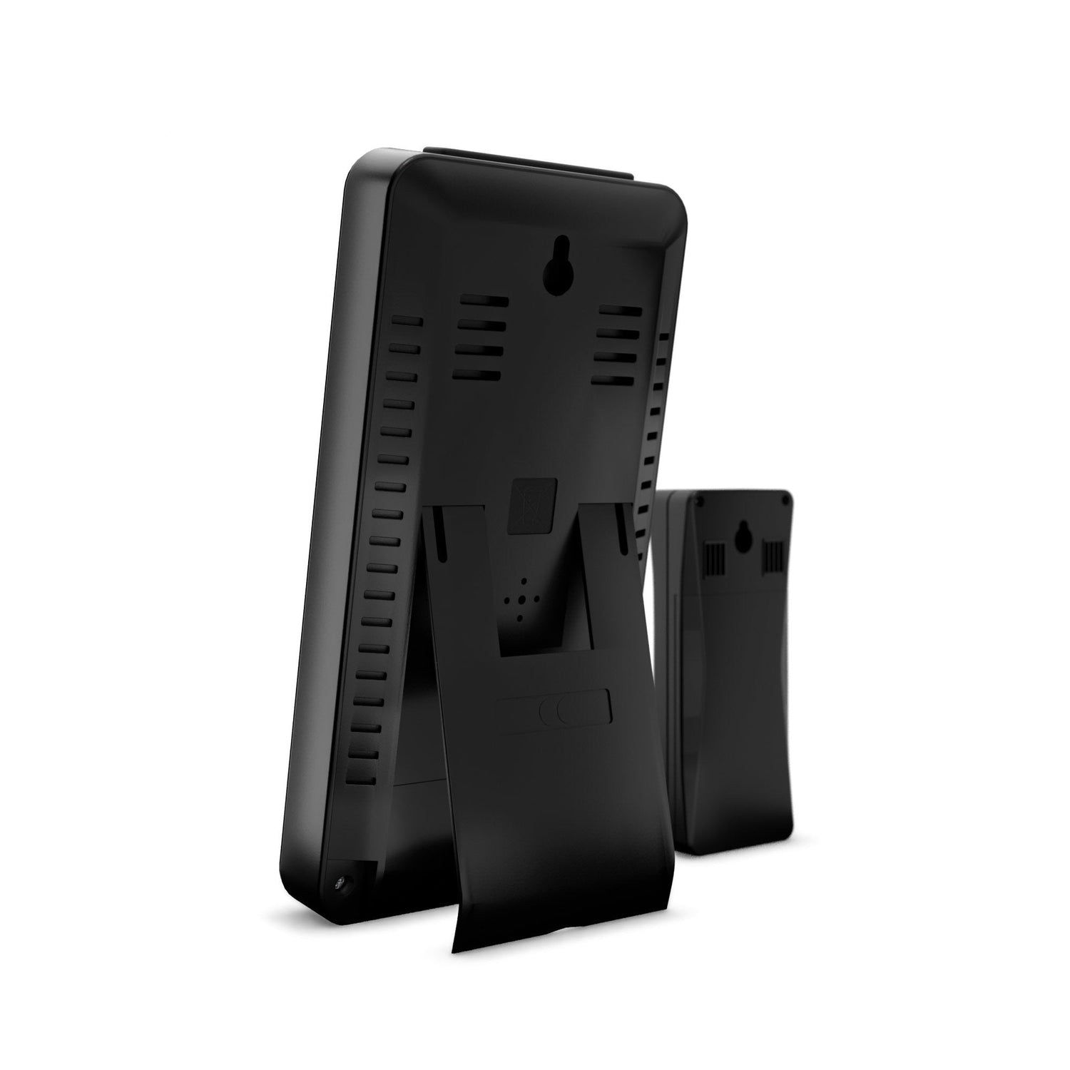 Mebus 11908. Color del producto: Negro, Funciones de medición: Higrómetro de interior, Termómetro de interior, Higrómetro de exterior, Termómetro para exteriores, Tendencia en pantalla de función de medida: Higrómetro, Termómetro. Fuente de energía: Batería, Tipo de batería: AAA, Voltaje de la pila: 1,5 V. Ancho: 80 mm, Profundidad: 22 mm, Altura: 160 mm