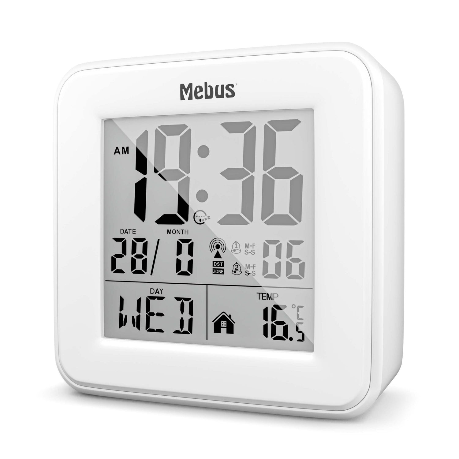 Mebus 25594, Reloj despertador digital, Plaza, Blanco, 12/24h, F, °C, Cualquier género