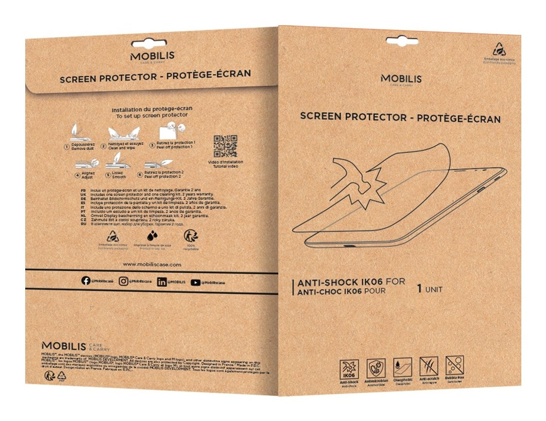 Mobilis 036336. Tipo de protector de pantalla: Protector de pantalla, Tamaño máximo de pantalla: 25,6 cm (10.1"), Dureza: 5H, Transmisión de luz: 99%, Marca compatible: Zebra, Compatibilidad: ET60 - ET65 10.1''. Peso: 22 g. Cantidad por paquete: 1 pieza(s)