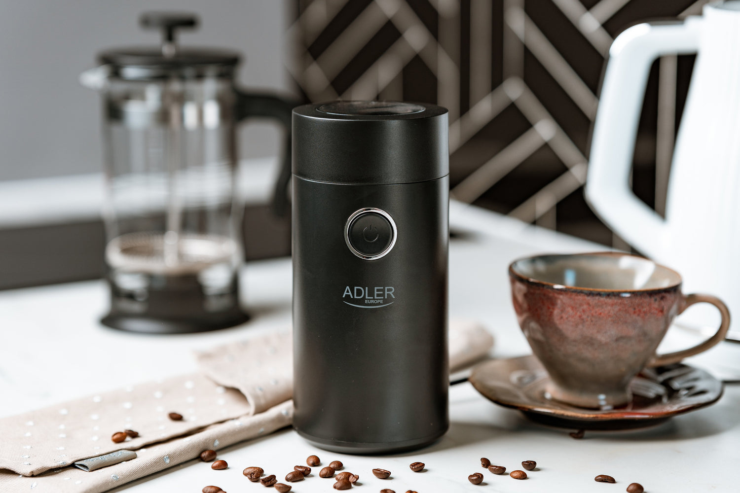 Adler AD4446BS. Tipo de producto: Molinillo, Capacidad de granos de café: 75 g, Material del tazón: Acero inoxidable. Potencia: 150 W, Voltaje de entrada AC: 220-240 V, Frecuencia de entrada AC: 50-60 Hz. Peso: 720 g, Ancho: 96 mm, Profundidad: 96 mm. Ancho del paquete: 100 mm, Profundidad del paquete: 100 mm, Altura del paquete: 210 mm