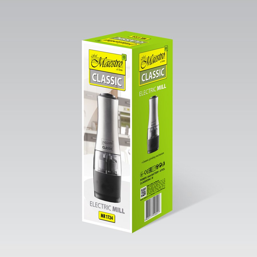 Maestro MR-1724 M. Tipo de producto: Molinillo para sal y pimienta, Color del producto: Negro, Acero inoxidable, Material de la cuchilla: Cerámico. Tipo de batería: AAA