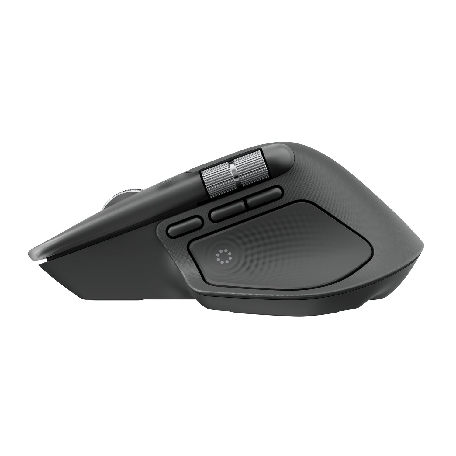Logitech MX Master 4. Factor de forma: mano derecha. Tecnología de detección de movimientos: Laser, Interfaz del dispositivo: RF Wireless + Bluetooth, Resolución de movimiento: 8000 DPI, Tipo de botones: Botones presionados, Cantidad de botones: 8, Tipo de desplazamiento: Rueda. Fuente de energía: Baterías. Color del producto: Grafito