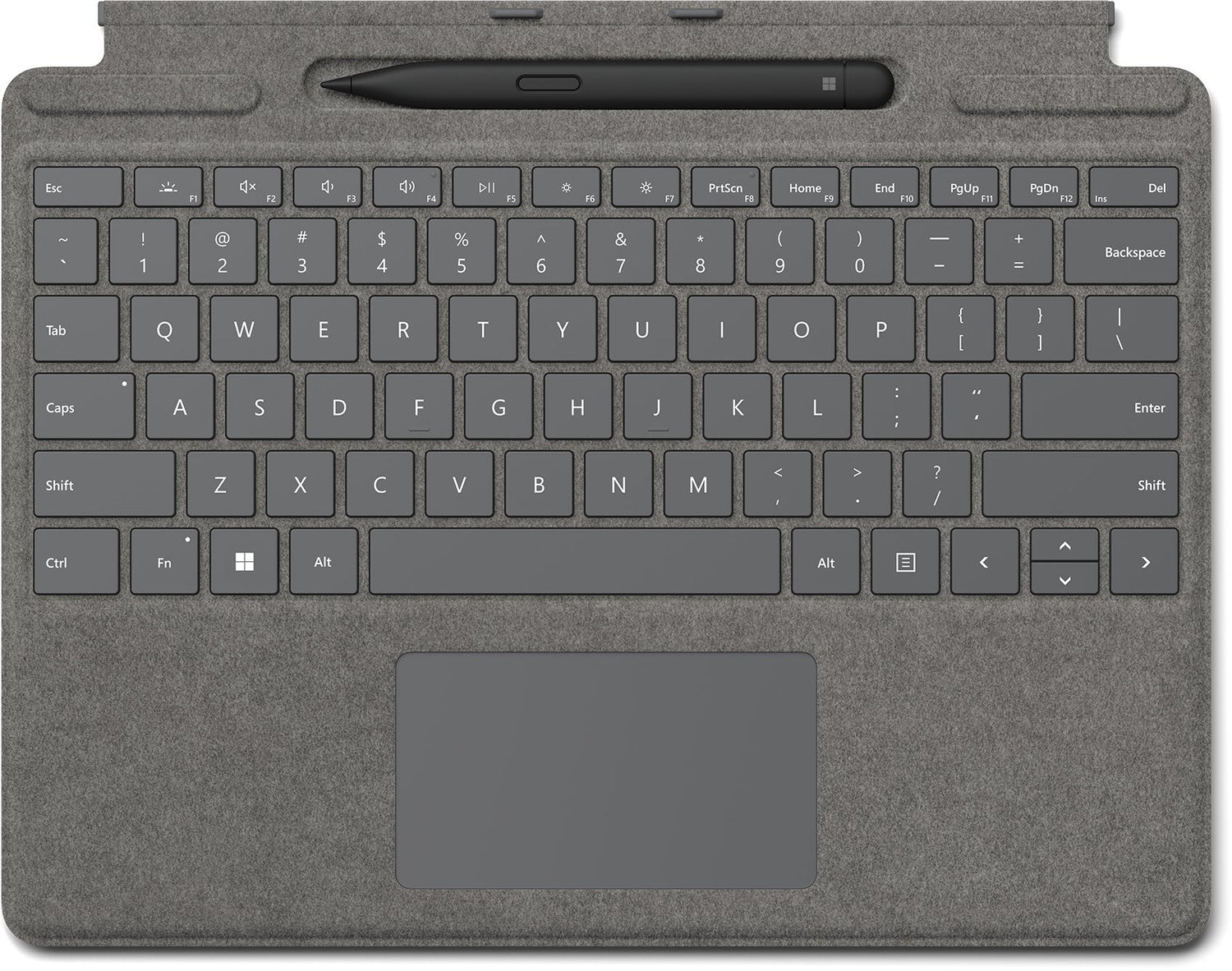 Microsoft Surface Pro Signature Keyboard w/ Slim Pen 2, Touchpad, Microsoft, Surface Pro 10 Surface Pro 9 Surface Pro 8 Surface Pro X, Platino, Tejido alcántara, Acoplamiento