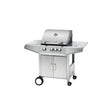 Muvip Barbacoa Gas Inox 4 Fuegos - Estructura De Acero Inoxidable - 3 Fuegos Centrales + 1 Fuego Lateral - 2 Rejillas Esmaltadas - Bandeja Lateral - Asa Tacto Frio - Ruedas De Transporte - Color Plateado
