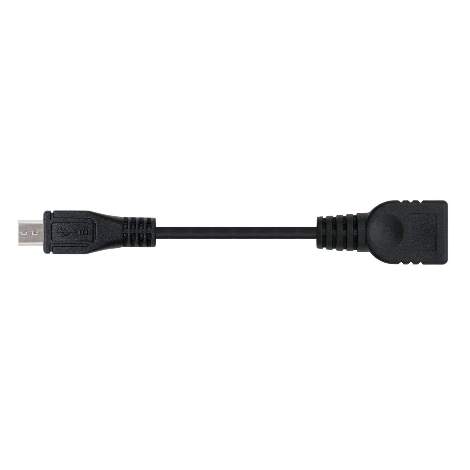 - Cable USB 2.0 OTG con conector tipo Micro USB B macho en un extremo y tipo USB A hembra en el otro
