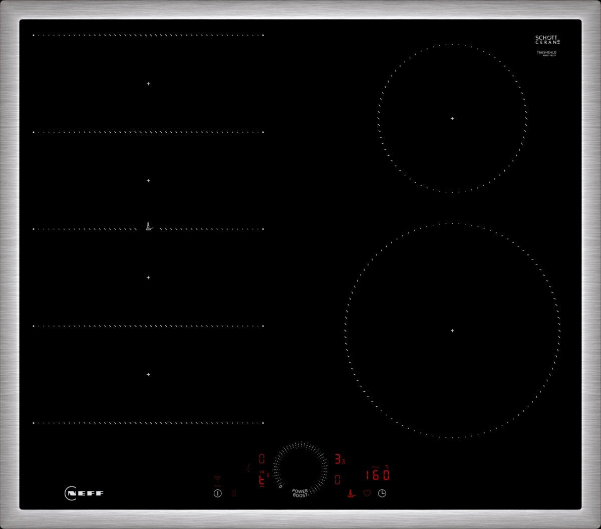 Neff T66SHE4L0, Negro, Acero inoxidable, Integrado, 60 cm, Con placa de inducción, Vidrio y cerámica, 4 zona(s)