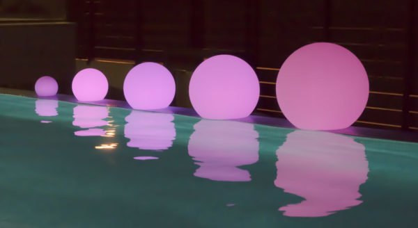 En el acabado FLOTANTE te permite utilizarla sobre el agua sin necesidad de cables. Su batería de Litio hace que su funcionamiento se prolongue hasta más de 6 horas. También podrás disfrutar de una amplia gama de colores gracias a su sistema LED RGB.