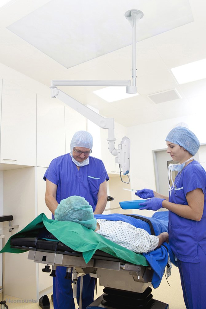 Este médico de montaje en techo LCD/LED/TFT Neomounts le permite montar una pantalla (max. 32" / 81 cm) en el techo. Este modelo permite a los usuarios girar, levantar, inclinar y girar la pantalla LCD para una máxima eficiencia y confort. Este montaje en el techo se conecta fácilmente a la parte trasera de cada pantalla de LCD debido al patrón de agujeros VESA.