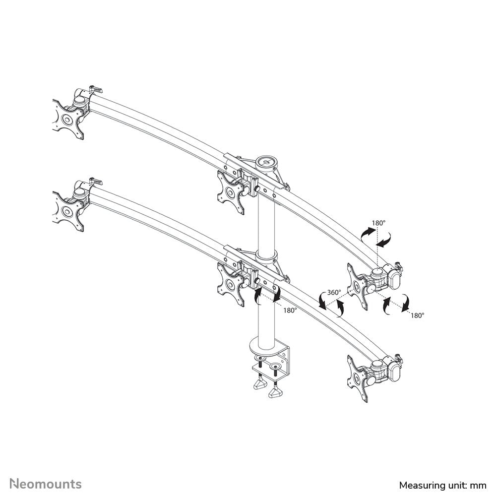 Neomounts FPMA-D700D6 Brazo de monitor 19-27". Montaje: Abrazadera, Tamaño mínimo de pantalla: 48,3 cm (19"), Tamaño máximo de pantalla: 68,6 cm (27"), Compatibilidad con interfaz de montaje (min): 75 x 75 mm, Compatibilidad con interfaz de montaje (max): 100 x 100 mm. Ajustes de altura, Ángulo de inclinación: 0 - 180°. Color del producto: Negro