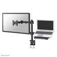 Neomounts FPMA-D960NOTEBOOK Brazo de monitor con soporte para portátil 10-27". Montaje: Abrazadera, Capacidad máxima de peso: 10 kg, Tamaño mínimo de pantalla: 25,4 cm (10"), Tamaño máximo de pantalla: 68,6 cm (27"), Compatibilidad con interfaz de montaje (min): 75 x 75 mm, Compatibilidad con interfaz de montaje (max): 100 x 100 mm. Ajustes de altura, Ángulo de inclinación: 0 - 180°. Color del producto: Negro