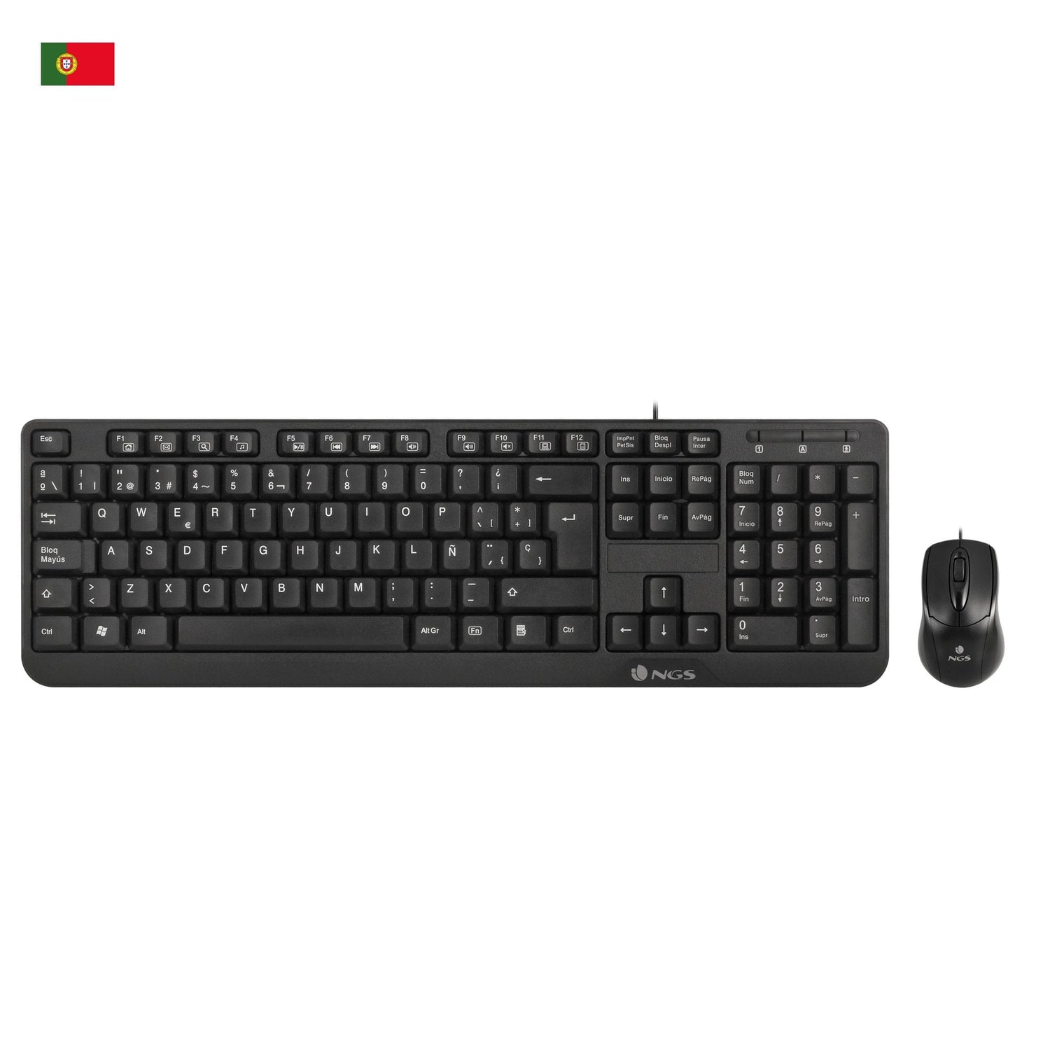 NGS Cocoa Kit, QWERTY, PT teclado Ratón incluido Universal USB Portugués Negro