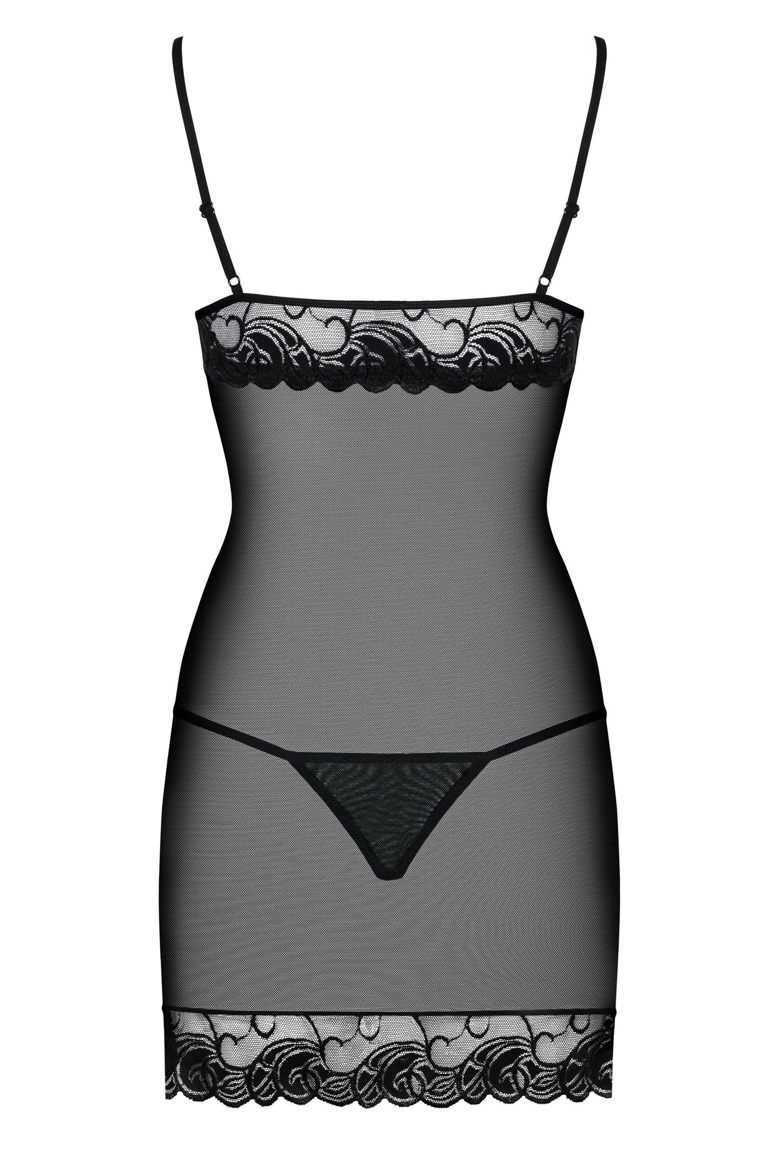 Obsessive Wonderia L/XL Camisa Negro, Transparente Elastano, Poliamida