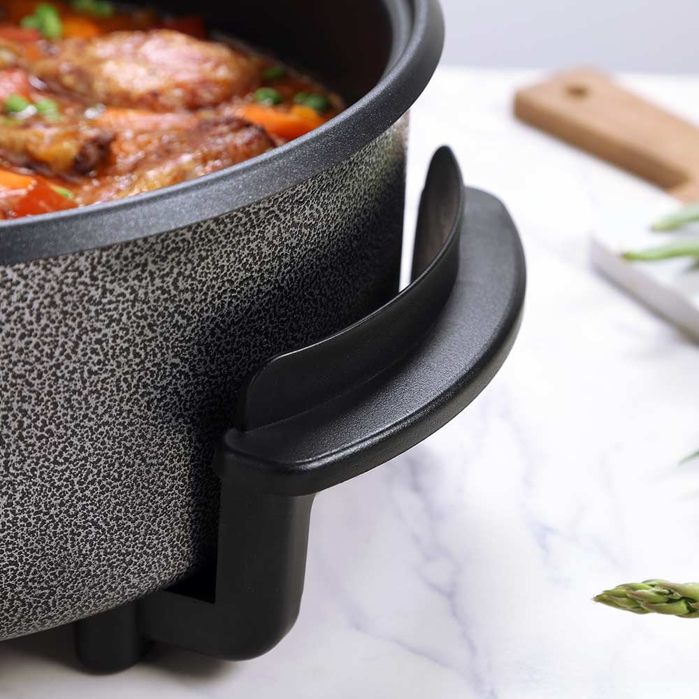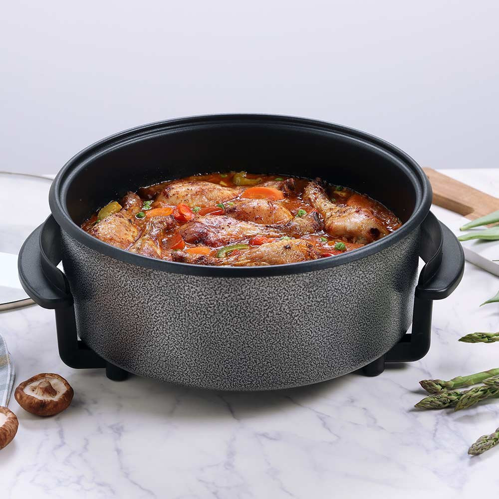 La olla eléctrica tiene una gran capacidad de 5 L, lo que la hace ideal para preparar comidas para toda la familia o para eventos con muchos invitados. Con un diámetro de 30 cm y una altura de 9 cm, esta olla ofrece suficiente espacio para cocinar una gran cantidad de alimentos a la vez.