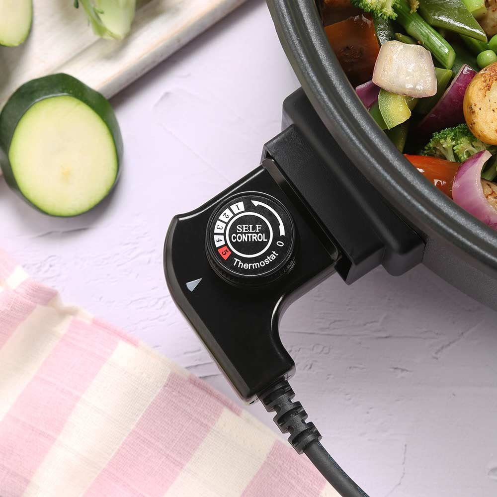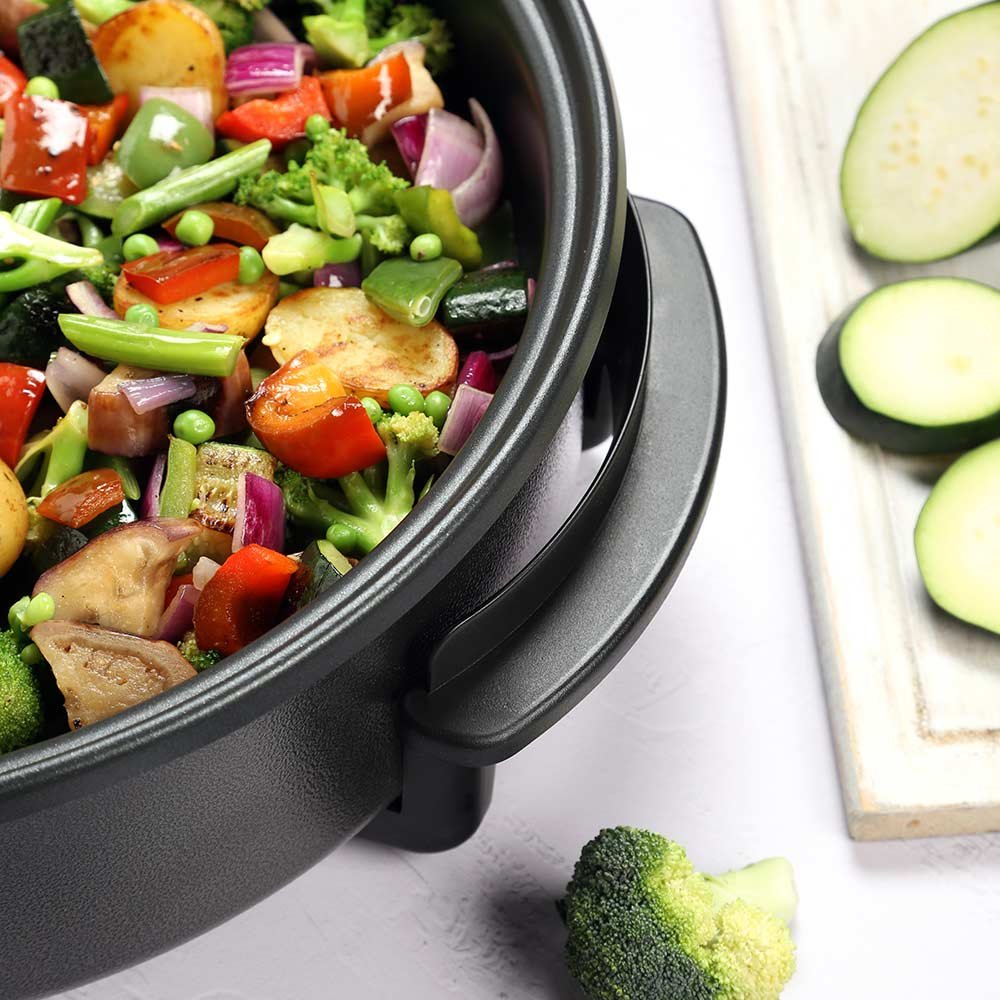 La olla eléctrica tiene una gran capacidad de 5 L, lo que la hace ideal para preparar comidas para toda la familia o para eventos con muchos invitados. Con un diámetro de 36 cm y una altura de 7 cm, esta olla ofrece suficiente espacio para cocinar una gran cantidad de alimentos a la vez.