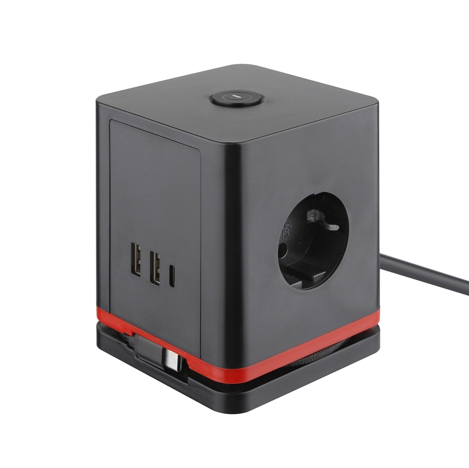 Olympia SW 1000. Longitud de cable: 1,5 m, Colocación soportada: Interior, Color del producto: Negro, Rojo. Cantidad de salidas AC: 3 salidas AC. Voltaje de entrada AC: 230 V, Potencia máx. de entrada: 3680 W, Máxima corriente: 16 A. Ancho: 86 mm, Profundidad: 86 mm, Altura: 106 mm. Ancho del paquete: 152 mm, Profundidad del paquete: 152 mm, Altura del paquete: 121 mm