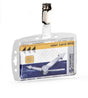 Con sujeción de pinza giratoria y uñero para retirar y cambiar fácilmente la tarjeta. Puede combinarse con cadenas, cintas para portanombres y cordones extensibles.